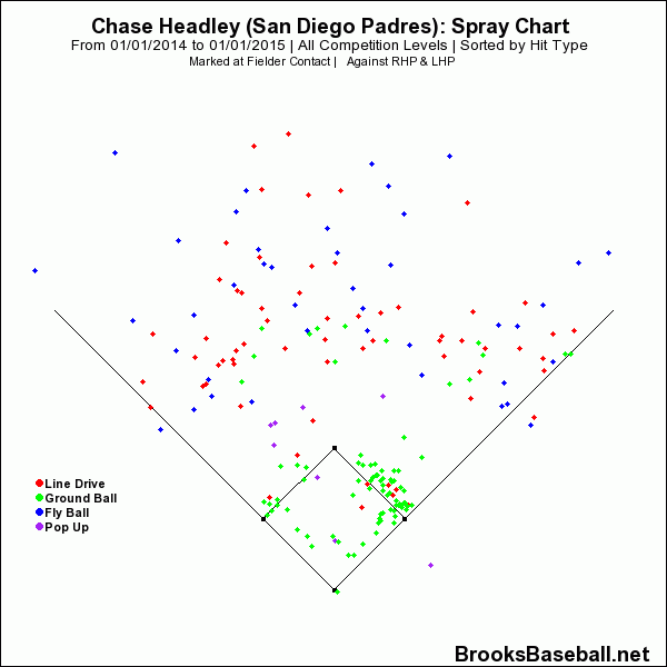 Over the course of his career Headley has had some interesting splits. First, I will compare them in 2014 and then his career numbers: