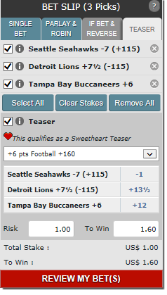 Over the course of the last two football seasons I have played with some pocket change on Bovada.lv. It’s a website where you can bet on the lines of NFL games to MLB games to The Oscars (seriously). Over time I have had a lot of fun making bets. I usually partake in betting on straight lines, but I’ve also been known to get involved in other kinds, including sweetheart teasers.