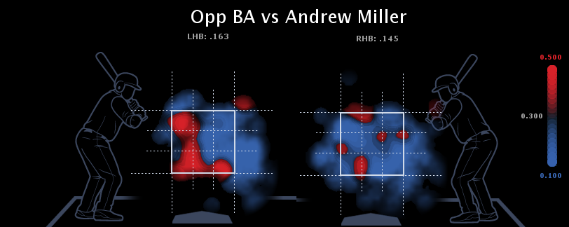 Miller vs. LH Batters: 26 IP, 48/5 K/BB, .161/.206/.261