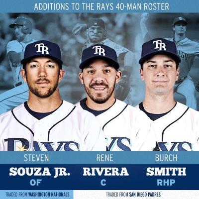 Acquired by the Rays: Kevin Jepsen, Rene Rivera, Burch Smith, Jake Bauers, Steven Souza, Travis Ott